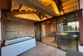 Ovile is an apartment of 80 square meters that can accommodate 4 - 5 persons and is located on the 1st and 2nd floors. Outside, you have a lovely covered terrace with a view of the Tuscan countryside, and you can enjoy the view from the dining area, sun loungers, or the jacuzzi.