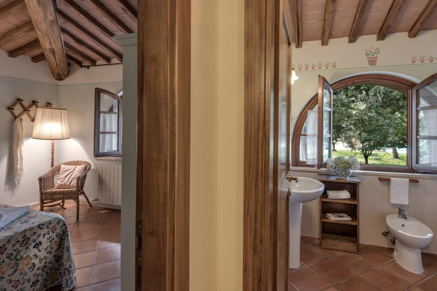 Pienza has 2 bedrooms – one with a double bed and the other with two single beds. Naturally, there is also a bathroom with a toilet and shower.