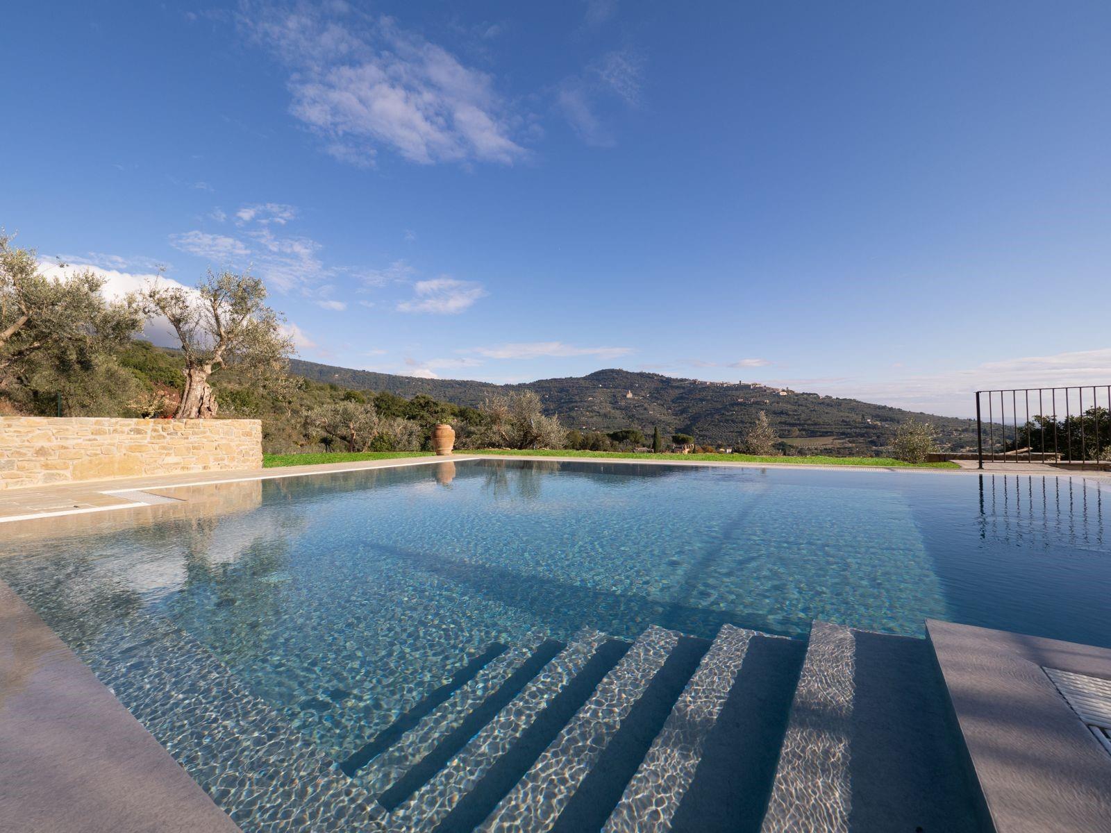 Villa Il Grifo is an elegant villa for 10 guests with 5 bedrooms and 6 bathrooms, located close to Cortona. Surrounded by garden and open countryside, the villa features a private infinity pool, a well equipped kitchen, and a setting where classic Tuscan charm meets modern comfort, all thoughtfully created with great attention to detail by the owners. It is an ideal choice for those seeking a traditional villa with a contemporary touch, while enjoying the opportunity to explore both Tuscany and Umbria during their holiday.