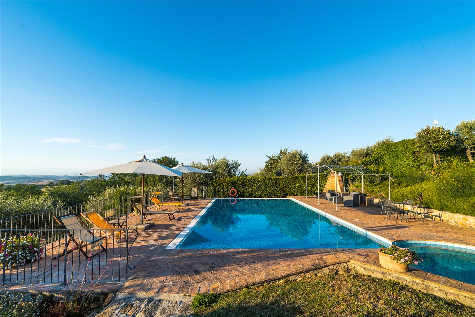 BorgoCollelungohas 16apartmentsand is surrounded byaverybeautiful,opengarden and largepoolwith the mostsublimeviews,wehave seento date. Big lawn.Own production ofoiland wine.Good common events.