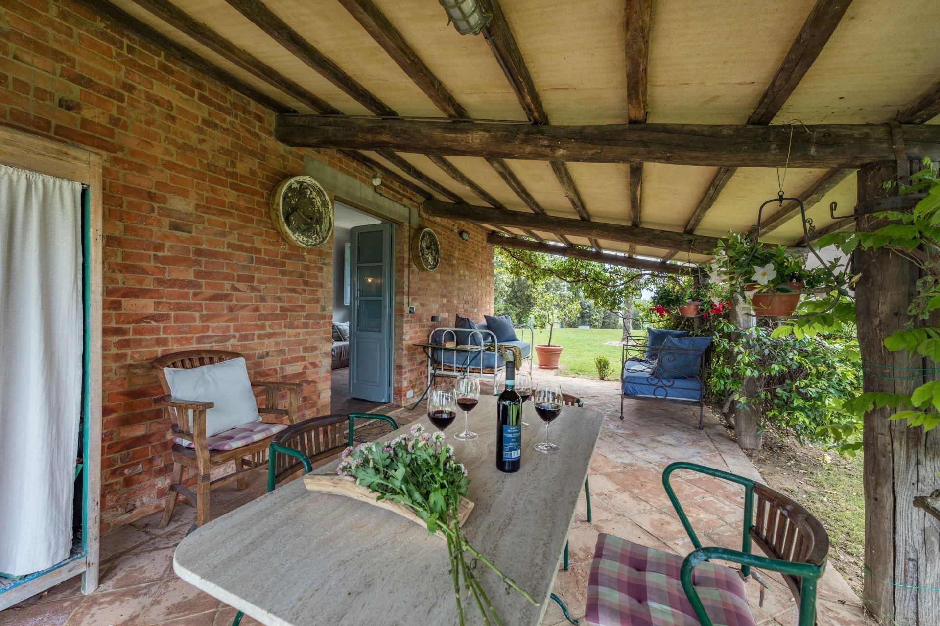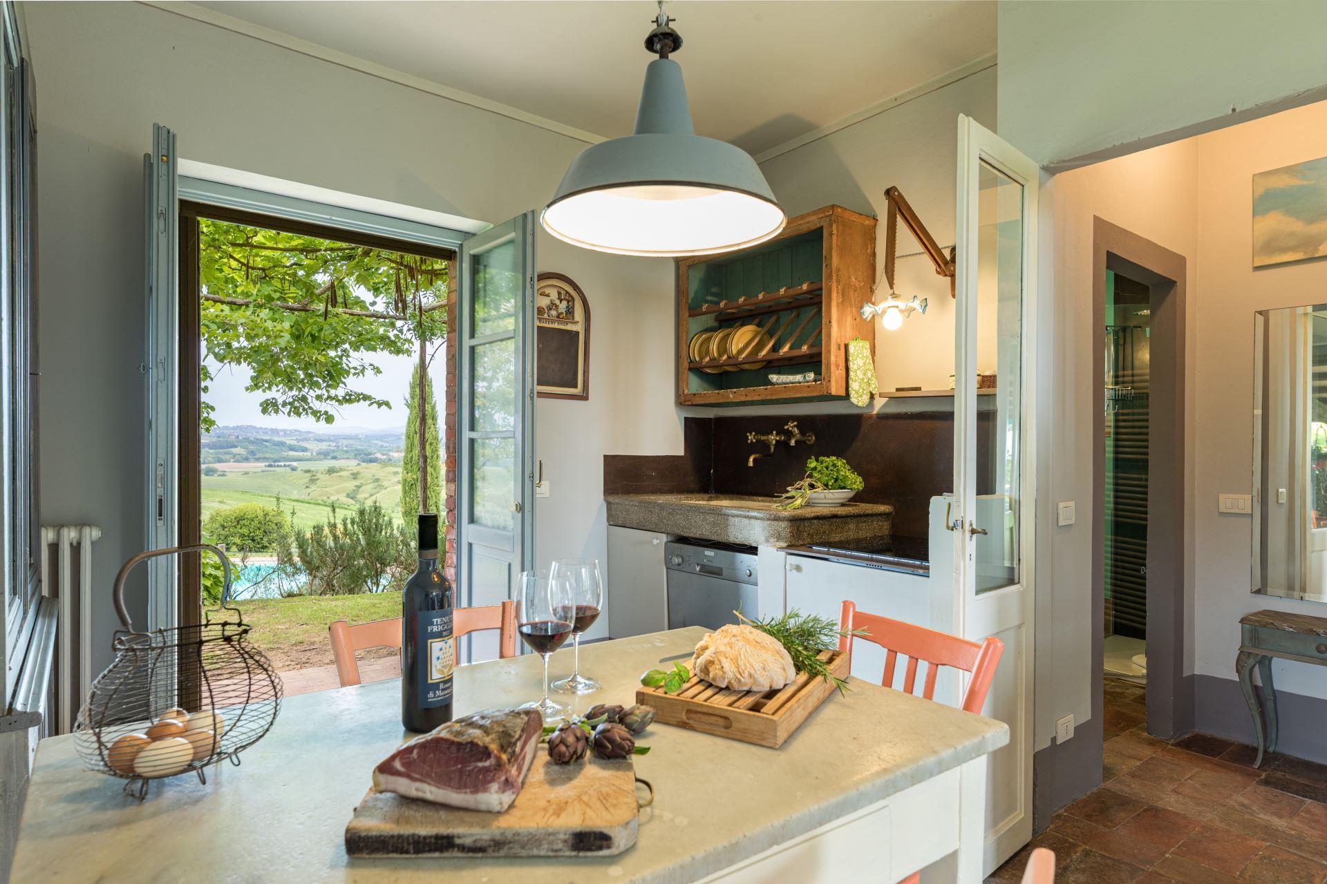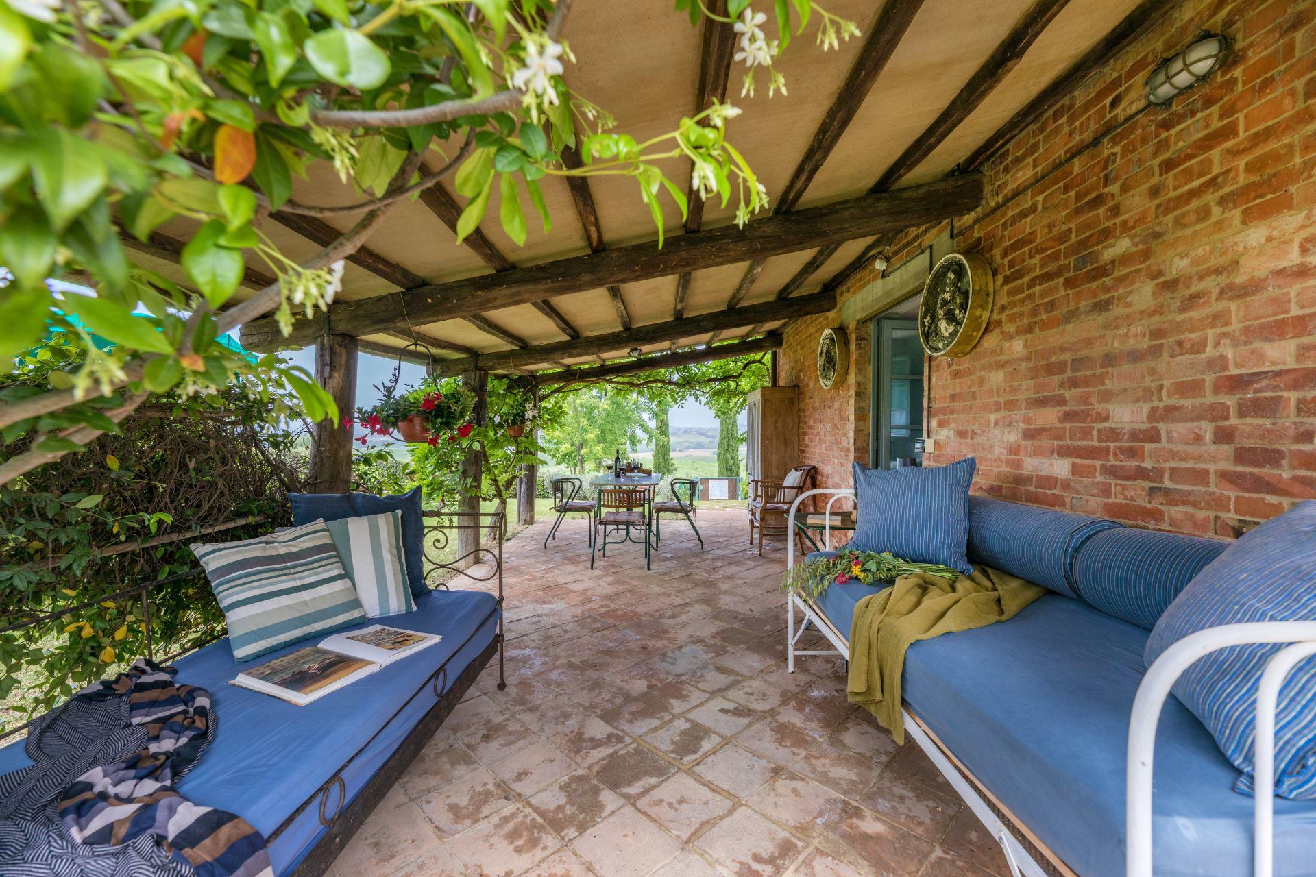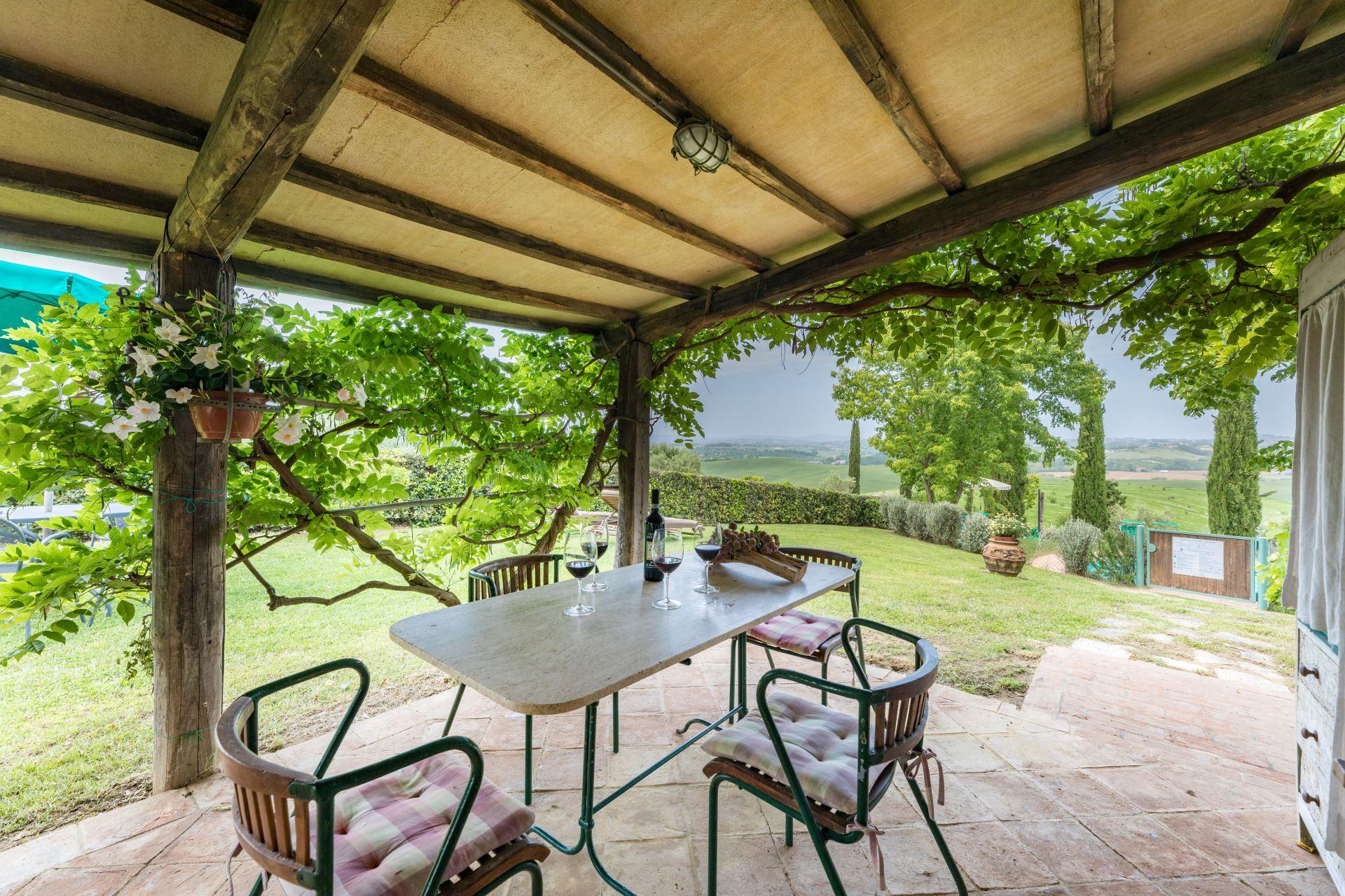 This sweet independent house was originally a barn. Made of bricks and completely restored, the house is set in an enviable position on top of a hill with fabulous views towards Siena. Casa Aurora has been divided into two apartments, each with private entrance and can hold up to 6 persons. Absolutely fantastic view.