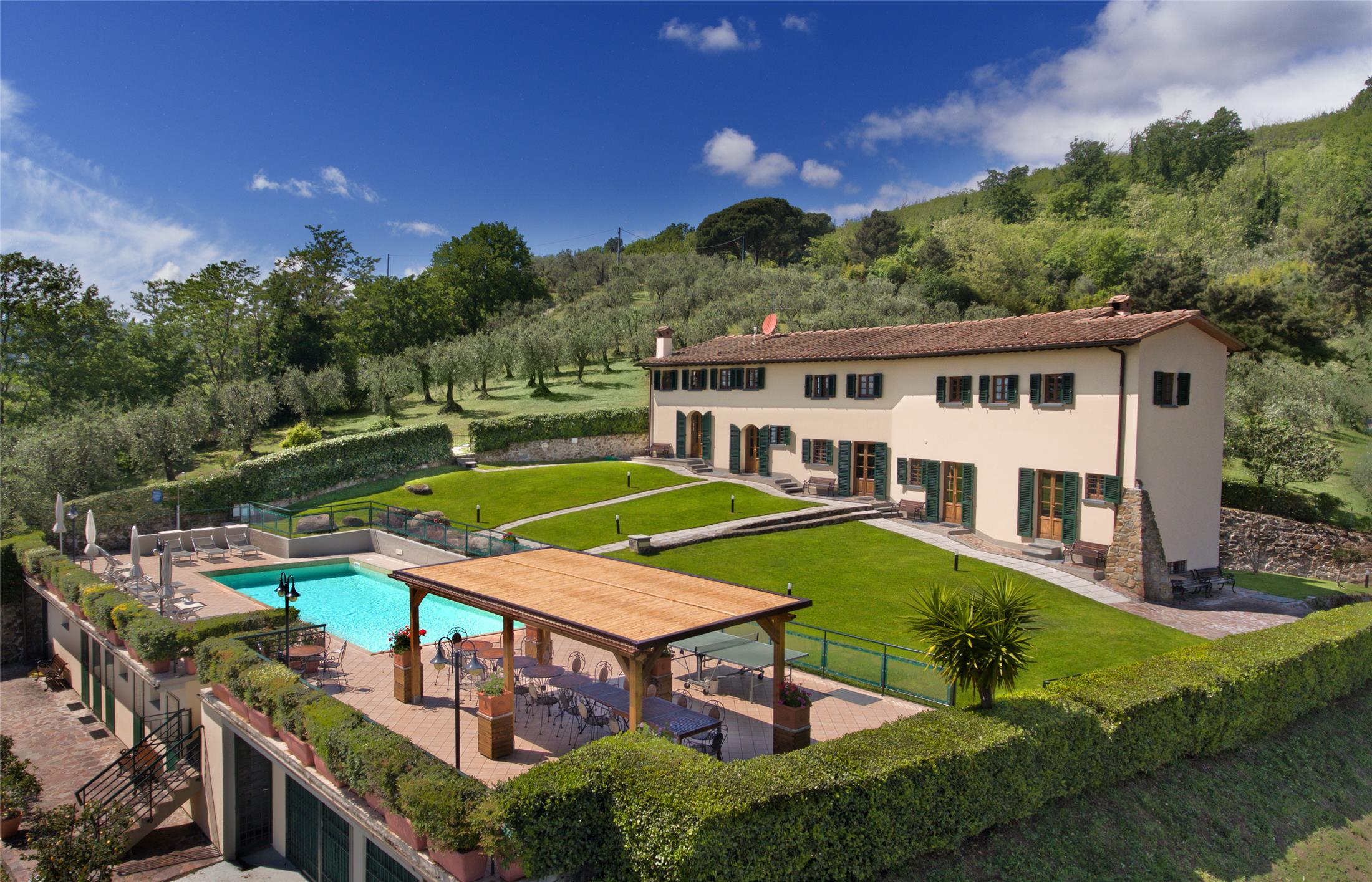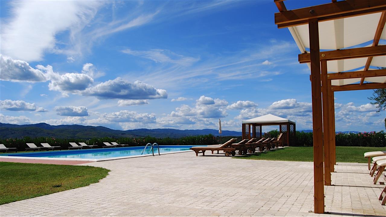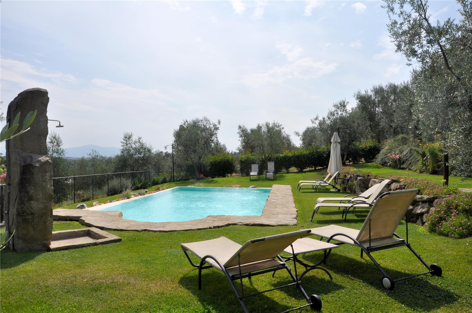 An exceptionally beautiful country house with 1 privat villa and 10 apartments. There is room for 8 persons in the villa. Elegant facilities in a beautiful area near Arezzo. 2 large pools sharing with other guests, and lovely terraces in the middle of a wine area.