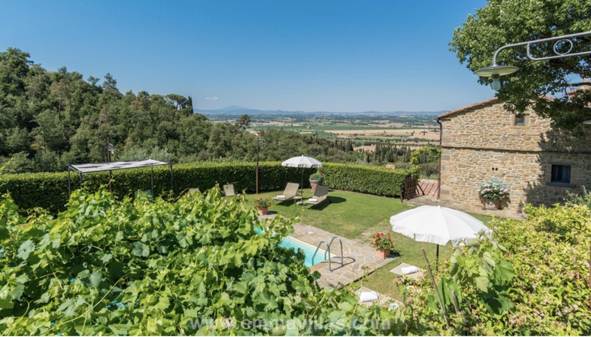 Beautiful charming Tuscan stone villa that accommodates 8 - 10 persons. Close to both Cortona and Umbria. The villa also includes 4 bedrooms and 4 bathrooms.