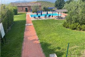 Landstedet ligger ned ad en 3 km lang grusvej og består af 10 ferielejligheder og beliggende er en skøn plet i Toscana, hvor I vil opleve afslapning og harmoni. Masser af bakker med vinstokke og oliventræer så langt øjet rækker. Den dejlige pool med solstole vil hurtigt blive samlingspunktet, hvis man da ikke er ude på opdagelse i området.