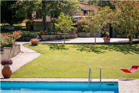 Privat pool i stor grøn have