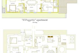 På første sal ligger Il Poggetto, der indholder 4 dobbeltværelser med eget bad, et rummeligt køkken (med opvaskemaskine), opholdsstue med en stor muret pejs. Nedenfor trappen er terrasse med havemøbler til rådighed.