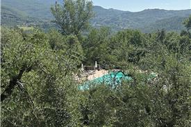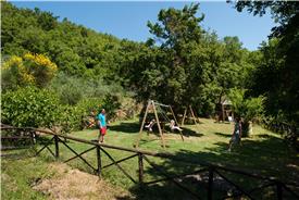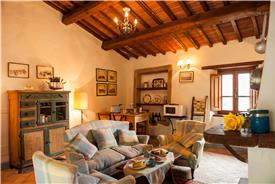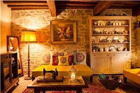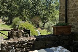 Denne 3-værelses lejlighed ligger i stueplan. Ferielejligheden har 2 soveværelser og 1 badeværelse. Køkken med opvaskemaskine, komfur og køleskab. Opholdsrum med ildsted, sofa og lænestole. Udendørsområde i egen lille have med et stort, gammelt oliventræ. Herfra er der udsigt til olivenlunden omkring poolen.