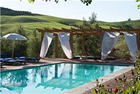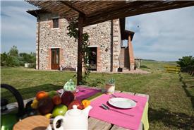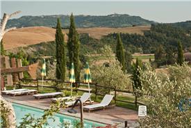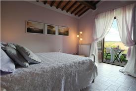 Biancospino på 85 m2 til 4 - 6* personer er beliggende på 1. sal. Der er et forældresoveværelse, et dobbeltværelse, et køkken, to badeværelser med bruser og en stue med dobbelt sovesofa, satellittv og internet. Der er udsigt over swimmingpool og til byen Volterra. Der er en privat havepavillon i haven ved siden af Alchechengi og Tulipano.