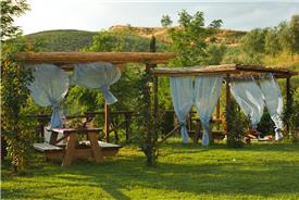 Edera på 55 m2 til 2 personer er beliggende i stueetagen med egen indgang. Der er et soveværelse med dobbeltseng, et badeværelse med bruser, et køkken og en stue med sofa, sattelit-tv og internet. Der er hvidt travertin gulv, bjælkeloft med synlige spær, originale hvælvede lofter og pejs med stenfacade. Privat udendørsområde med havemøbler, grill og sofa. Denne lejlighed ligger separat på bagsiden af hovedhuset ved morgenmadsrestauranten. Denne lejlighed har ikke aircondition.