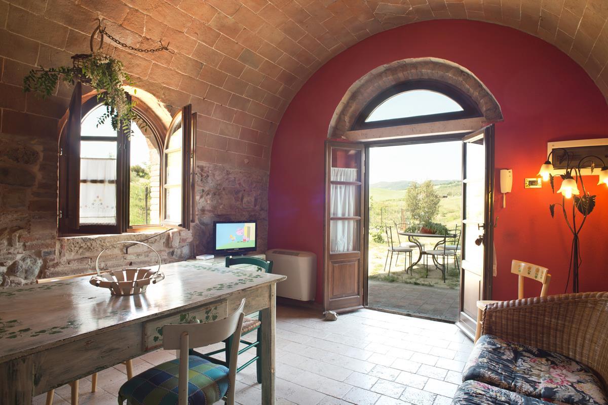 Alchechengi på 85 m2 til 4 - 6* personer er beliggende på 1. sal. Der er et forældresoveværelse, et dobbeltværelse. et køkken, to badeværelser med bruser og en stue med dobbelt sovesofa, satellit-tv og internet. Der er udsigt over swimmingpool og til byen Volterra. Der er en privat havepavillon i haven ved siden af Biancospino og Tulipano.