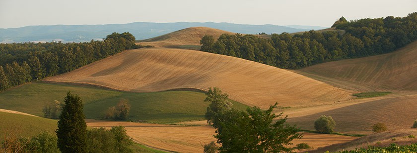 Rejseforedrag. Flot italiensk natur med bakker og marker.