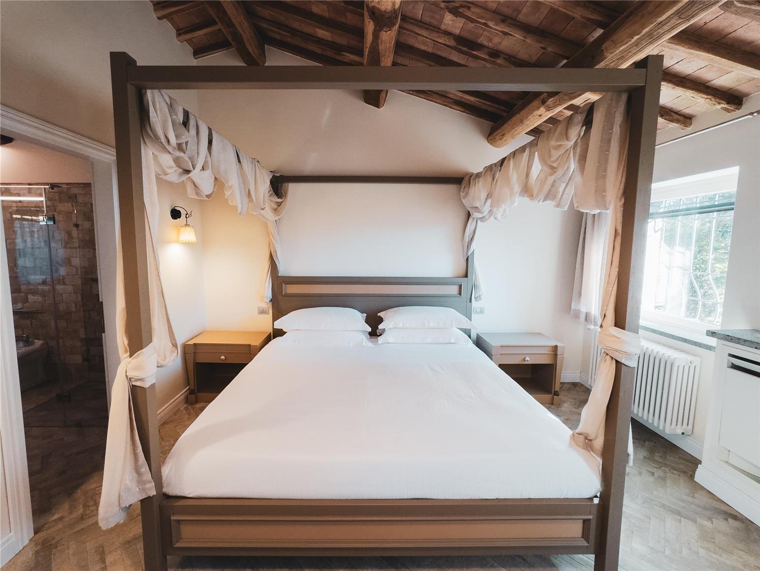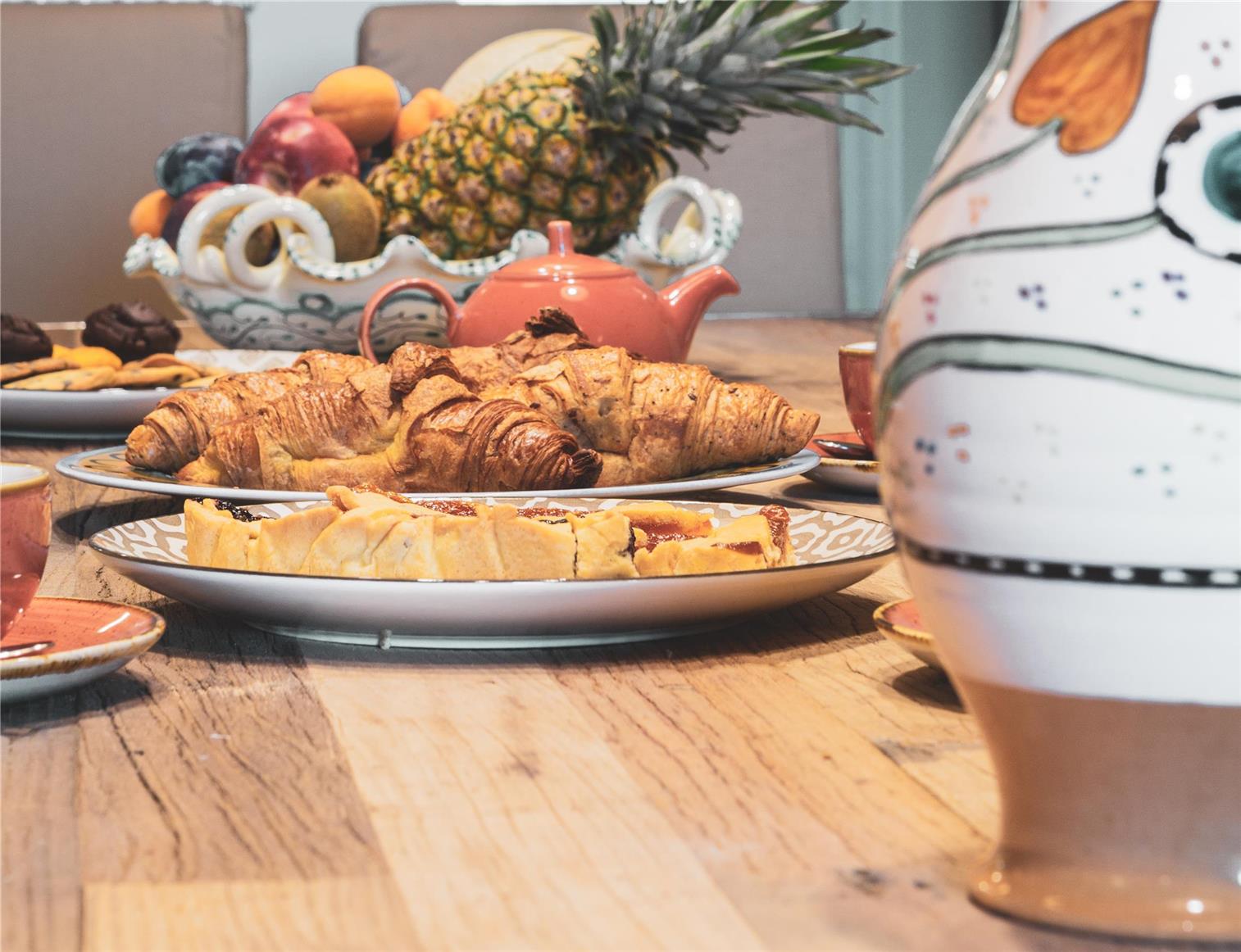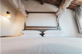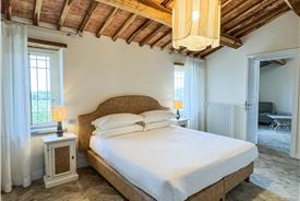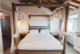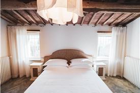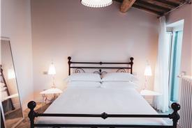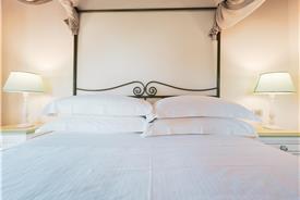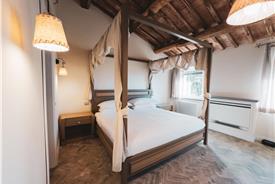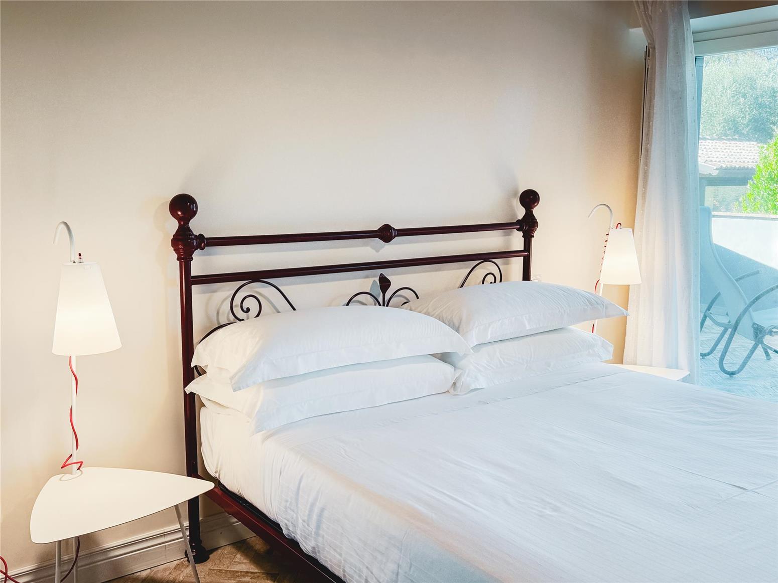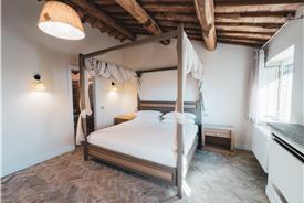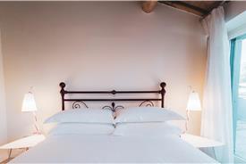 Fælles for alle værelserne er at der er klædeskabe, italienske detaljer med terrakottagulve og det smukke træbjælkeloft.
