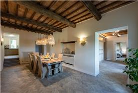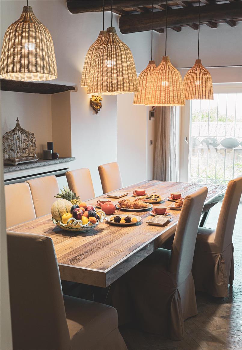 Men lad os gå tilbage til den store gamle stenvilla, som også har en smuk overdækket terrasse. Villa Uva Stella er i 2 plan, og i stueplan finder I bl.a. stue med sofaer og tv. Derudover er der også en stor dejlig spiseplads med plads til alle 12 personer. Og ikke at forglemme et virkelig flot og moderne køkken, hvor I både finder opvaskemaskine, ovn, kogesektion, mikroovn, køleskab med frys og isterning-funktion. I forbindelse med køkkenet er der også en dør ud til terrassen, hvor I her finder en grill og en stenovn, hvor der er mulighed for at lave rigtige italienske pizzaer.