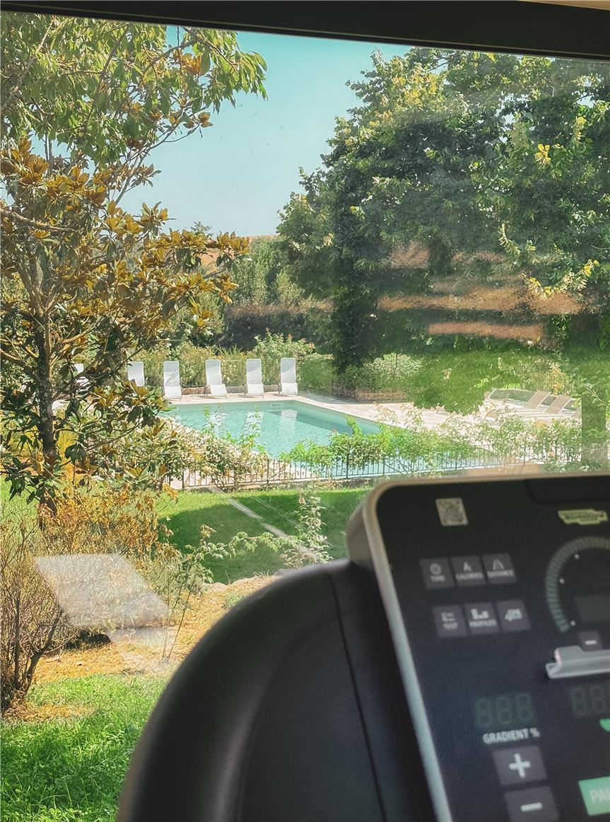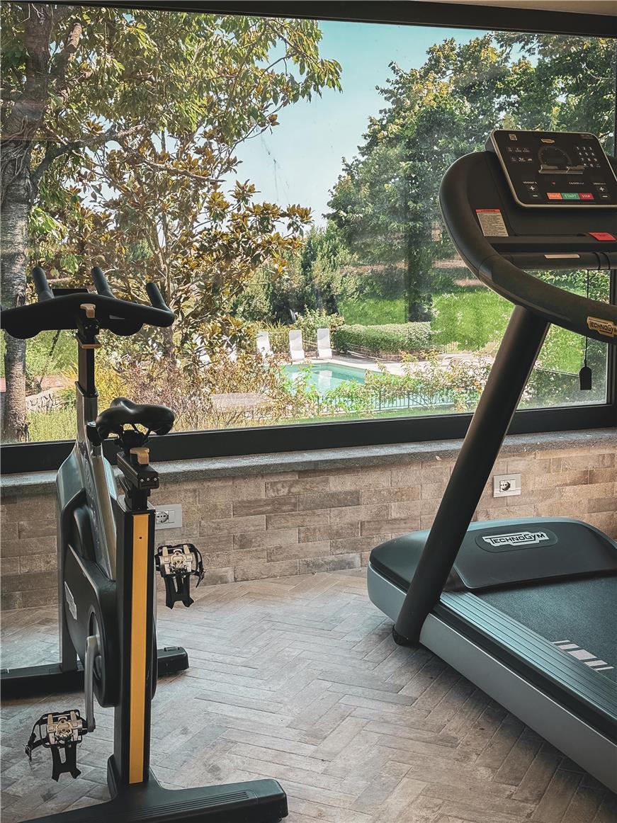 Vil I gerne være aktive, men uden at forlade villaen? Så er det også muligt da ejerne har indrettet et fitnessområde bl.a. med cykel og løbebånd – og så kan I nyde udsigten, mens I træner.