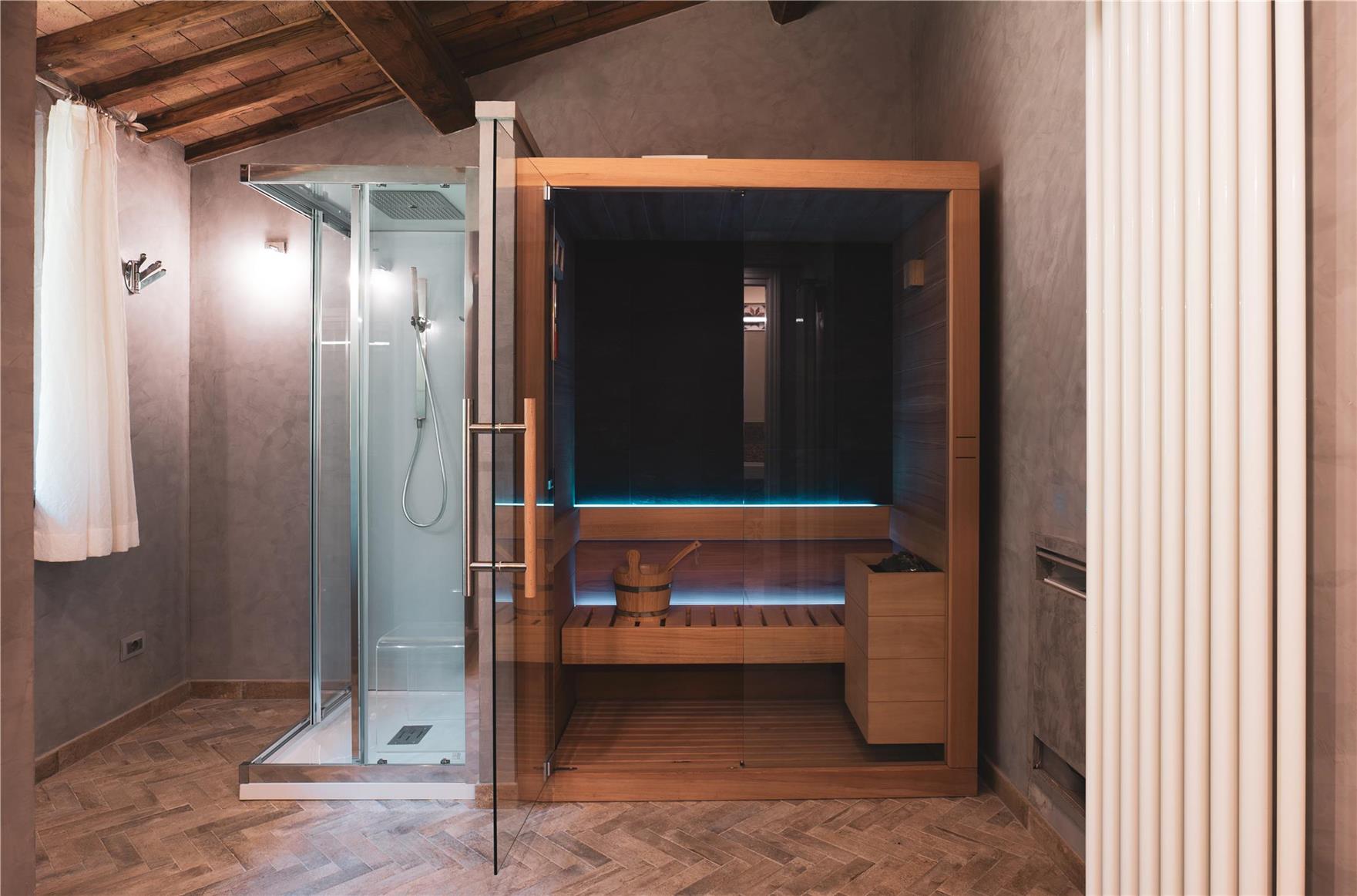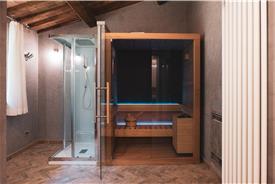 I stueplan tæt på køkkenet finder I også et lille badeværelse, som fører jer til villaens SPA-område. Det er intimt og hyggeligt med sauna og dampbad.
